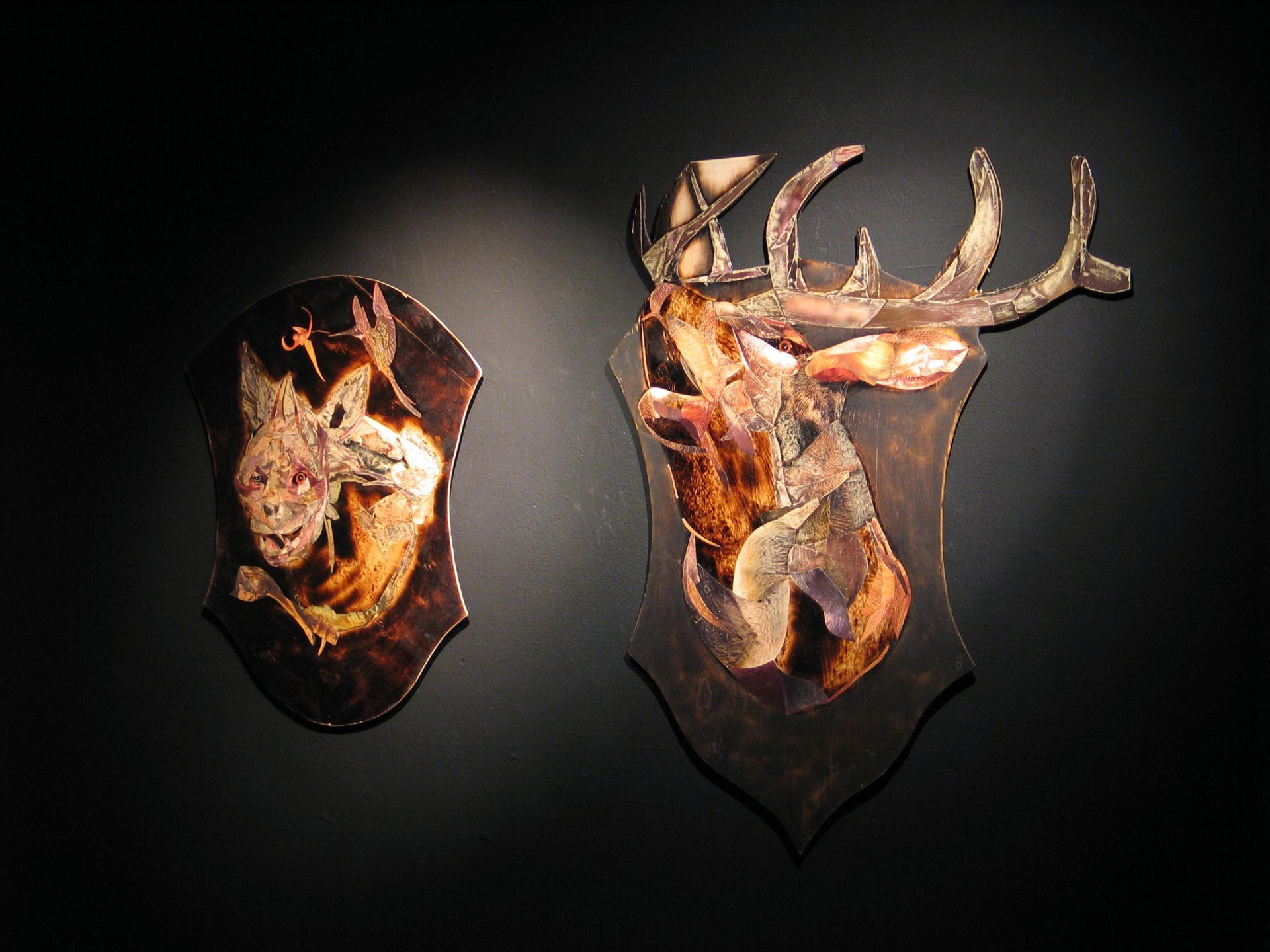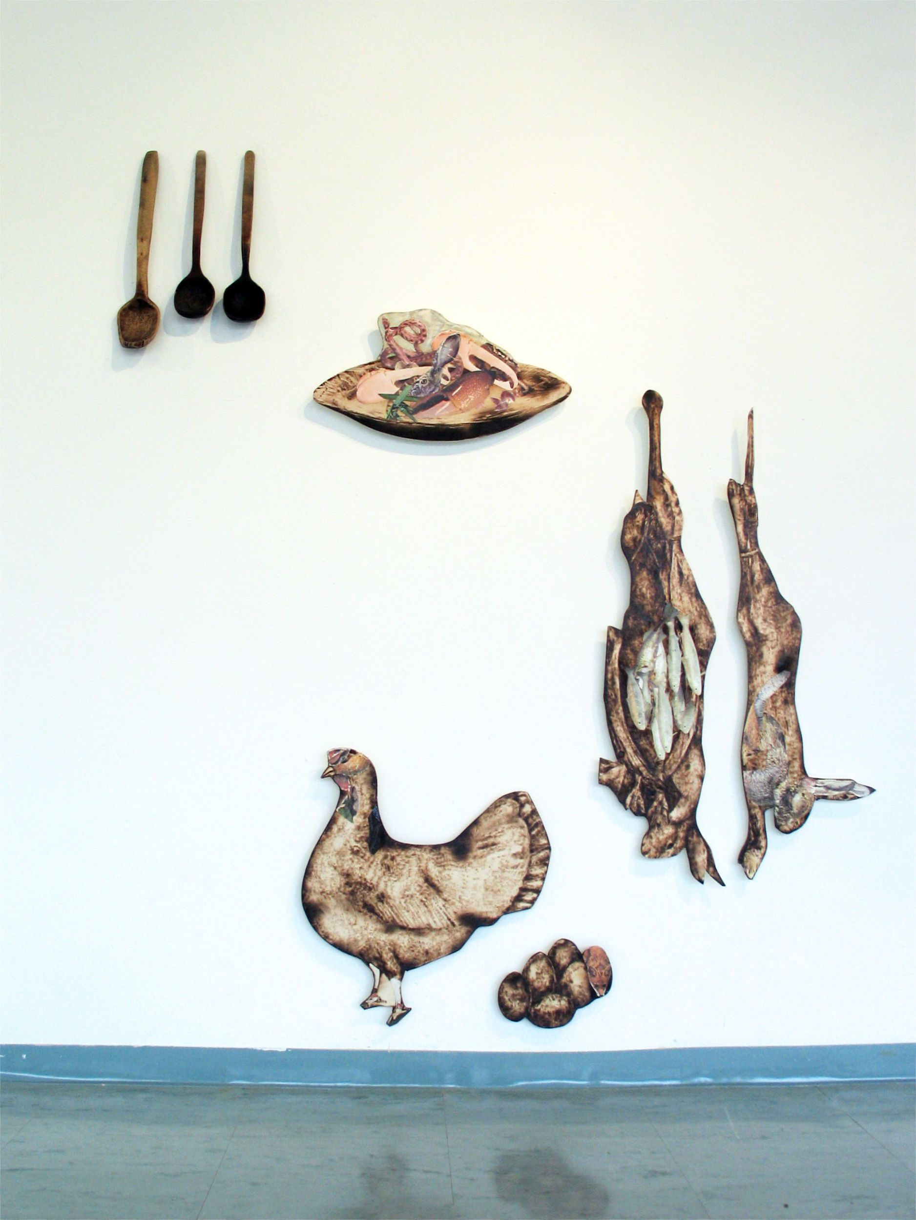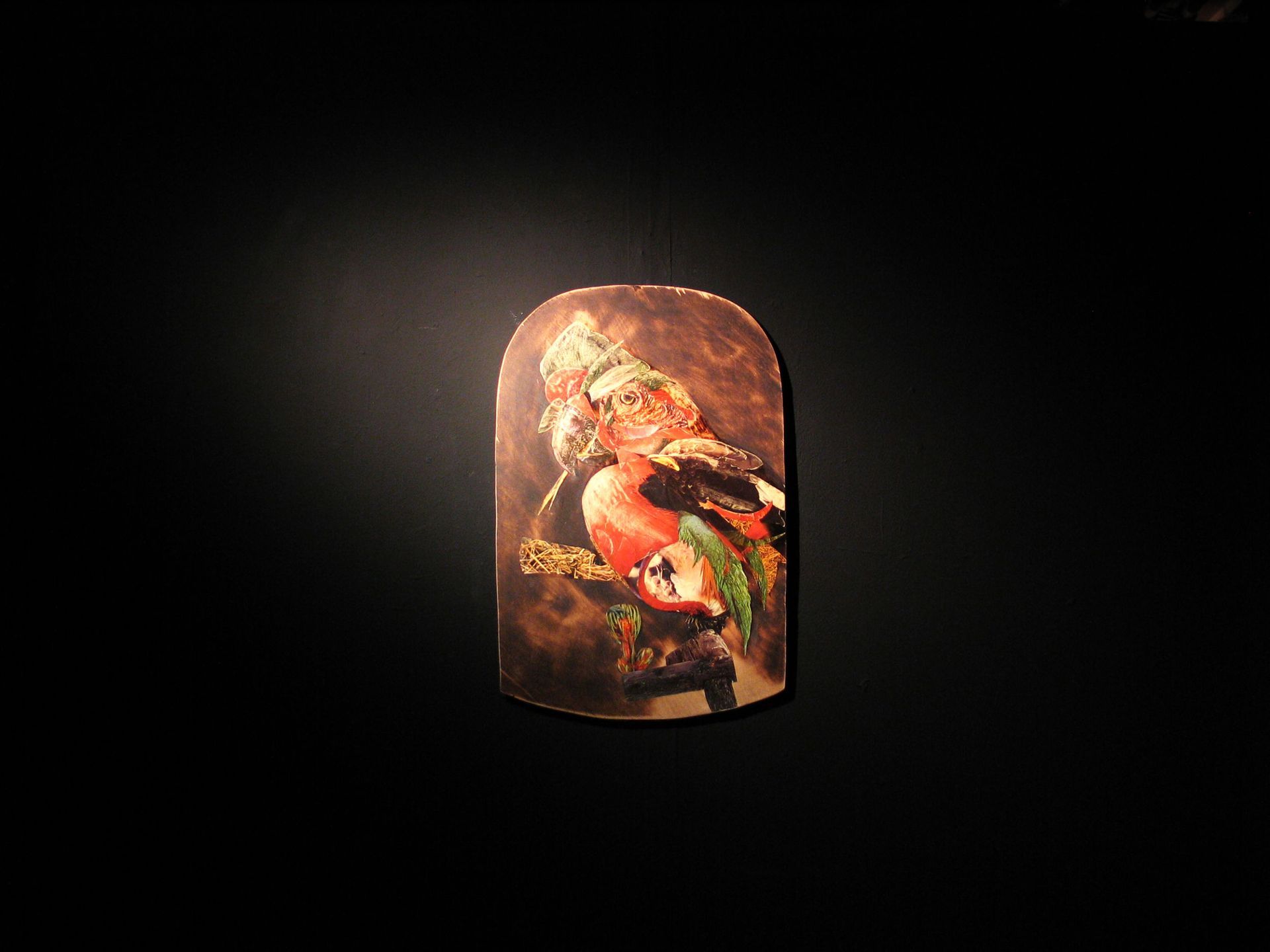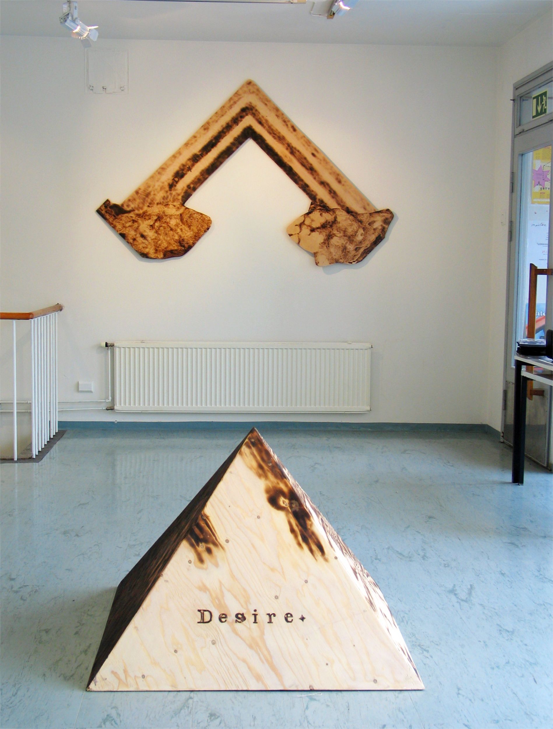 paper on plywood, burned wood
